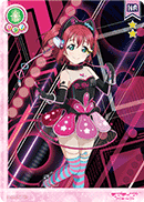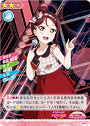 【등장 시】당신의 세트 리스트에 있는 공개된 악곡 카드의 색 1개마다 카드를 1장 뽑는다. 그 후, 핸드에서 【☆】을 가지고 있지 않은 멤버 1명을 《등장》시킬 수 있다. |