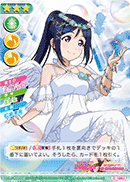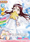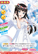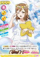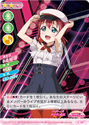 【등장 시】턴을 갖는 순서대로 모든 상대방은 각각 『다이아쨩』이라고 부를 수 있다. 모든 상대방이 『다이아쨩』이라고 불렀다면, 당신은 핸드에서 【☆】을 가지고 있지 않은 멤버 1명을 《등장》시킬 수 있다. 그러지 않았다면, 당신은 덱 제일 위에 있는 카드를 《등장》시킨다. |