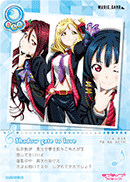 【라이브 참가 시】이 《라이브》에 「리코」와 「하나마루」와 「마리」가 정확히 3명이서 참가한다면, 이 《라이브》에 참가하는 멤버 전원에게 +【올】을 한다. |