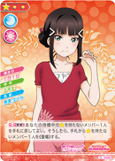 【등장 시】당신의 대기 중인 【☆】을 가지고 있지 않은 멤버 1명을 핸드로 되돌릴 수 있다. 그렇게 했다면, 핸드에서 【☆】을 가지고 있지 않은 멤버 1명을 《등장》시킨다. |