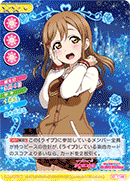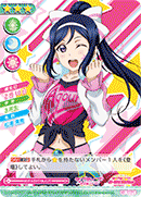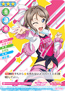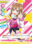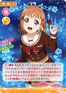 【등장 시】당신의 덱 위에서부터 카드 3장을 전원에게 보여주고 그 중에 있는 『1학년』인 멤버를 2명까지 핸드에 추가한다. 그 후, 남은 카드는 원하는 순서대로 뒤집어서 덱 제일 아래에 둔다. |