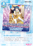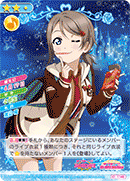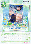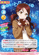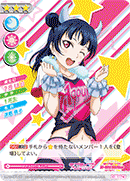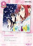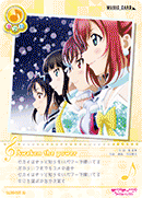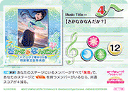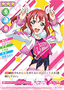 【등장 시】당신의 무대에 있는 멤버가 전부 『Aqours』라면, 당신의 컬렉션에서 스킬을 가지고 있지 않은 「Aqours」의 악곡 카드 1장을 공개해서 세트 리스트에 둘 수 있다. |