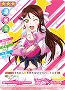 【라이브 참가 시】당신의 무대에 있는 멤버가 전부 「치카」이고, 당신의 핸드가 1장 이상 있다면, 공통 스코어가 4 감소한다. |