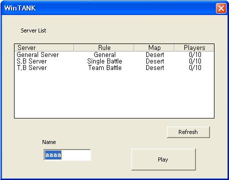 서버 선택 화면 입니다. Name란에 닉네임을 입력하시고, Server List에서