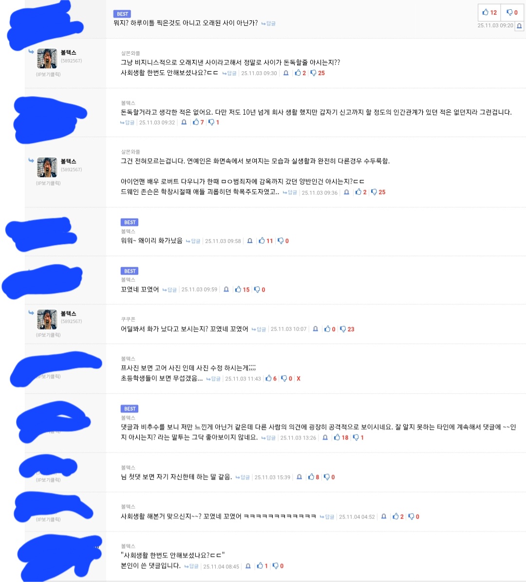 데이빗 하버 저 양반 원래 좀 유명함.. 배우들사이에서 폭력적이고 폭언관련된 이슈 많았던 양반임;; | 25.11.06 10:31 | | |