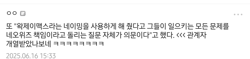 네오위즈가 저거 제작 혀락해준 것 때문에 엮일 수 밖에 없는 듯 | 25.06.16 15:39 | | |