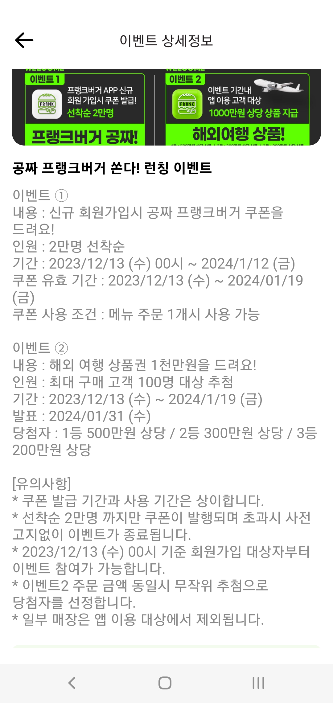 그러게요. 쿠폰 바코드 이미지가 열리지가 않네요. 아마 배달이나 포장주문하고 같이 써야하나보네요 지금은 적용되는 매장이 없어서 확인할수가 없네요. | 23.12.13 02:15 | | |