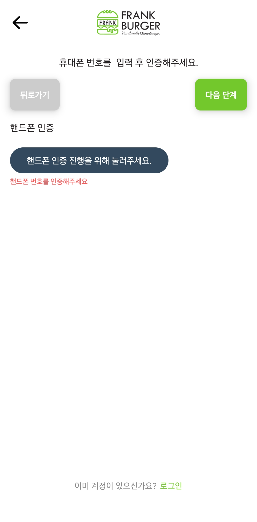 여기서 인증해도 다음단계 버튼 반응이없는데 뭐죠?..