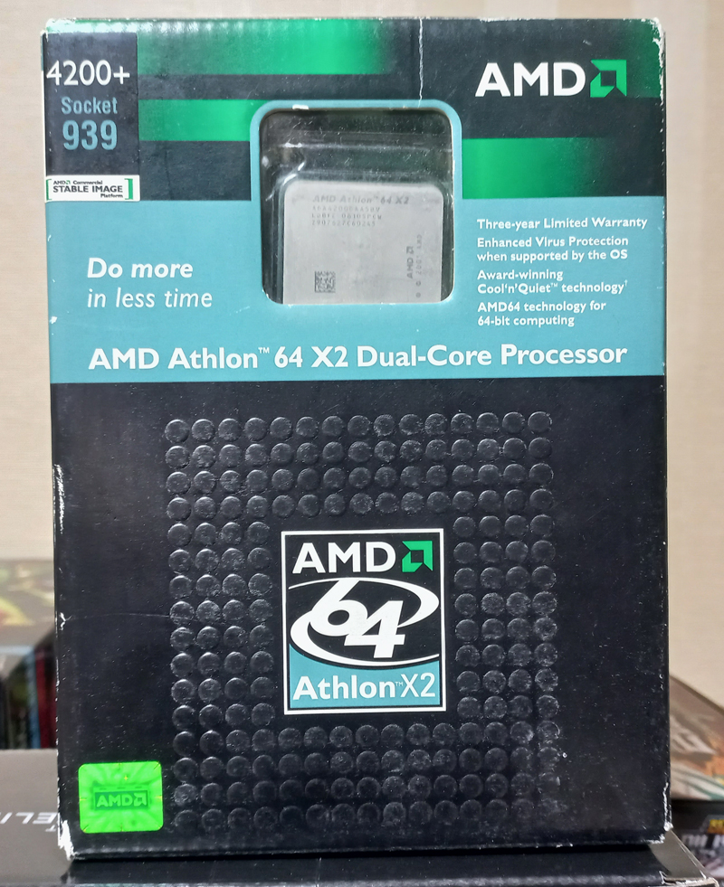 당시에 구입했던 애슬론 64 X2 4200+ 맨체스터 (소켓 939)를 생각난김에 꺼내서 찍어 봤습니다. 원래는 애슬론 64 3700+ (샌디에고)를 쓰고 있었다가 코어2듀오 콘로가 나와서 AMD CPU 가격이 떡락할 때 이걸로 샀었죠. 코어2듀오 콘로로 가고 싶었지만 그럴려면 CPU 뿐 아니라 메인보드와 메모리도 바꿔야 되었기에.....