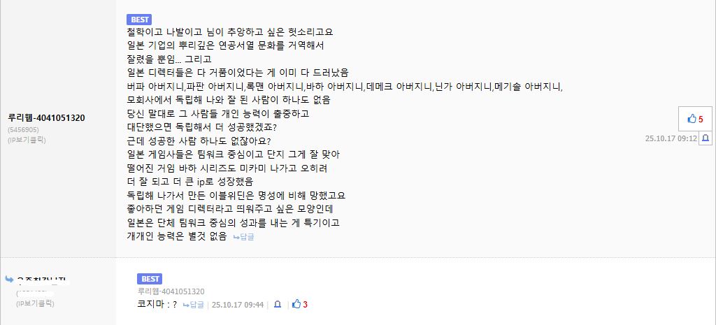 선민사상은 스팀틀니들이 갖는게 선민사상이지 천한 k게임 안한다고 침뱉는게 누군데 ㅋㅋ | 25.11.26 09:45 | | |