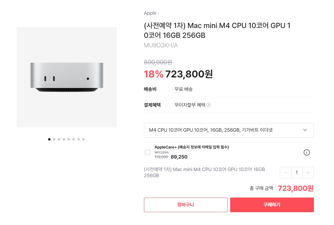 맥미니 M4 Pro CPU 12코어 GPU 16코어 24GB 512GB 모델은 9퍼할인 1891500원 맥미니 M4 Pro CPU 14코어 GPU 20코어 24GB 512GB 모델은 10퍼할인 2148300원 > CTO모델이라 바로 안올수도 있음 입니다. | 24.11.22 11:15 | | |