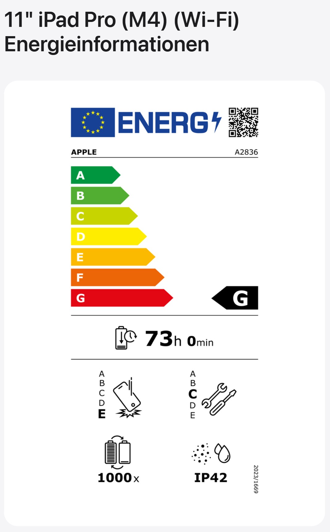 위에 글에도 있네요 오는 6월 20일부터 EU에서 판매되는 스마트폰 및 태블릿들은 전력효율, 배터리 수명, 수리 용이성, 낙하시 내충격성, 방진 및 방수인증 정보등을 담은 ENERGY 인증 라벨을 의무적으로 표기해야 합니다. 6월 20일 이전에 출시된 기기들은 이를 포함할 의무가 없으나 애플, 삼성, 구글 등 대형 업체들은 기존에 출시된 제품들도 ENERGY 인증 라벨을 표기하기 시작했습니다. | 25.06.22 21:17 | | |