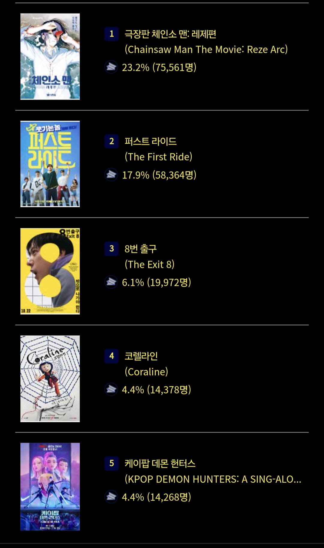 그새 더 올라서 4위네요 쑥쑥 오르는 듯 넷플에 나온지 이미 4개월이나 됐고 제한상영에, 할인쿠폰도 소진된 상태에서 이 정도면 대단하네요 | 25.10.24 14:38 | | |