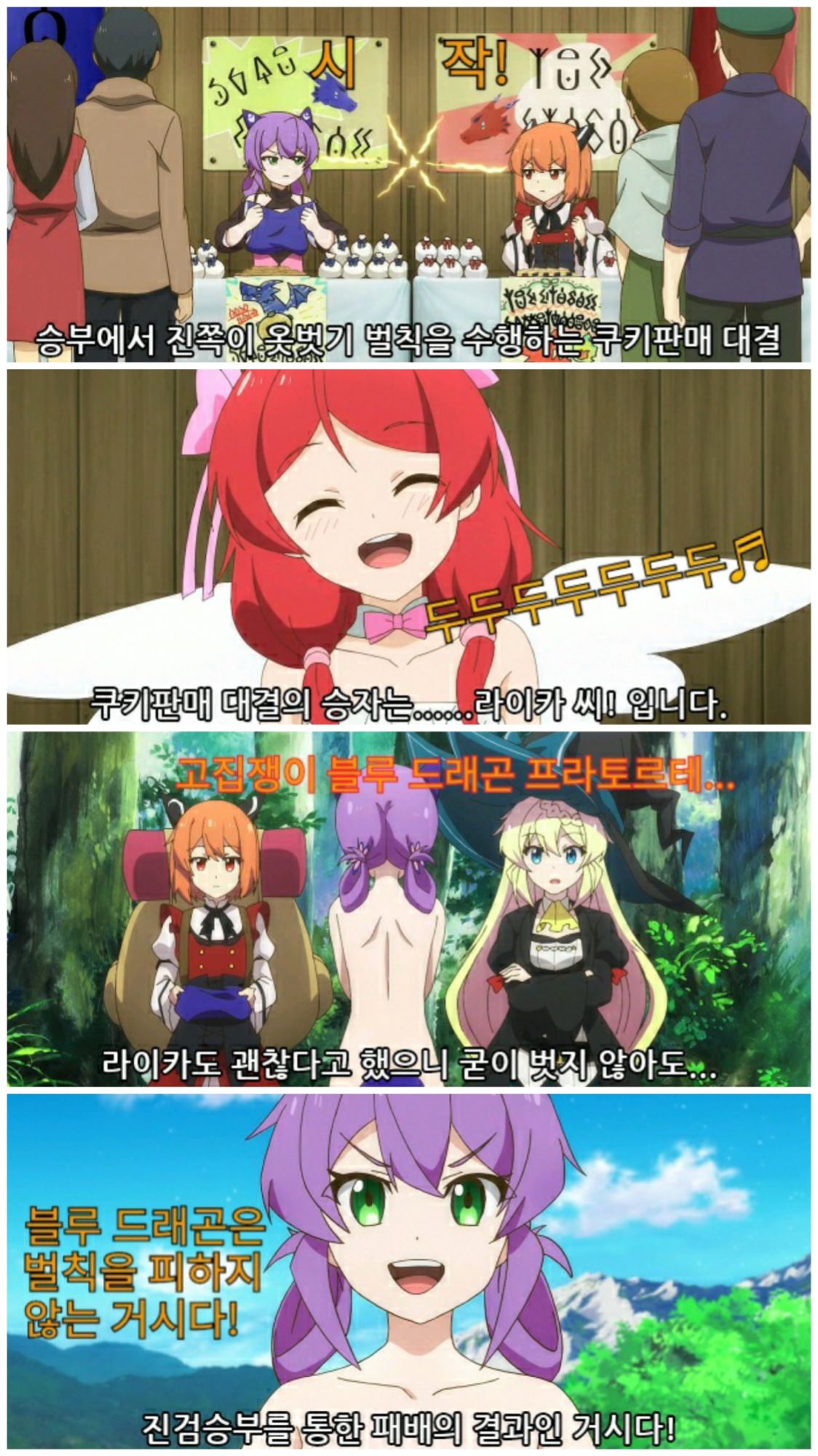 풍기문란이 아닌 거시다! 프라토르테는 승부의 벌칙을 수행하는 것일 뿐인 거시다! (이번 에피소드는 쿠키대결, 육식, 가짜마녀의 3편이 합쳐져 있었기 때문에 내용을 섞어서 만들어 봤...)