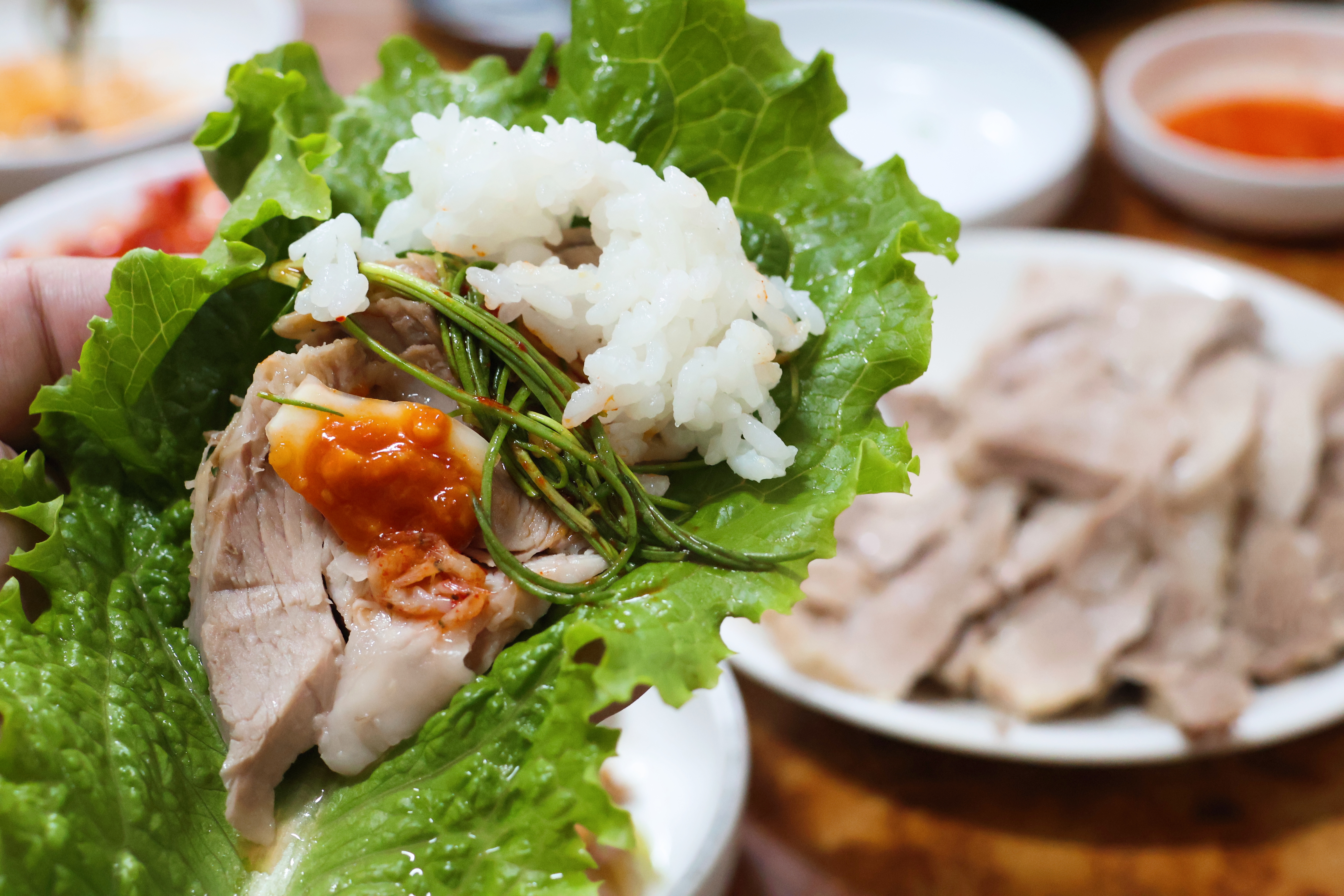 부드러운 보쌈을 김치에 싸 먹으면 그 맛이 더 좋아집니다. 만족스러운 한 끼였어요.