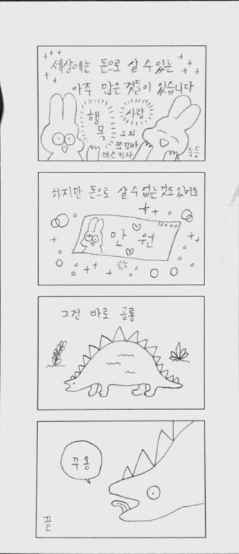 사람들은 돈이 있으면 사랑도 쟁취할 수 있다고 생각하지만.. 돈이 얼마가 있든, 그 돈만으로는 사랑은 커녕 뭐 다른 것들도 제대로 쟁취못함. | 16.12.12 10:12 | | |