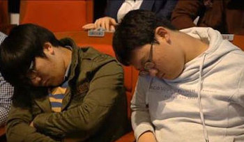 박수치다가 다시 잠들어