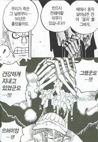 브룩: 아, 이렇게 있으니 눈물이 날거 같네요... 이미 뼈다귀뿐이라 흘릴 눈물은 없지만 말이죠! 요호호호호호!