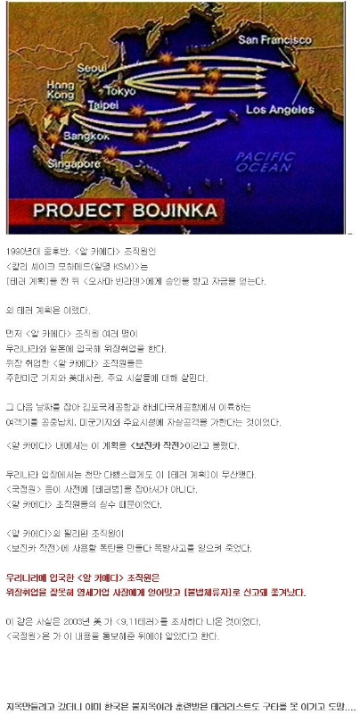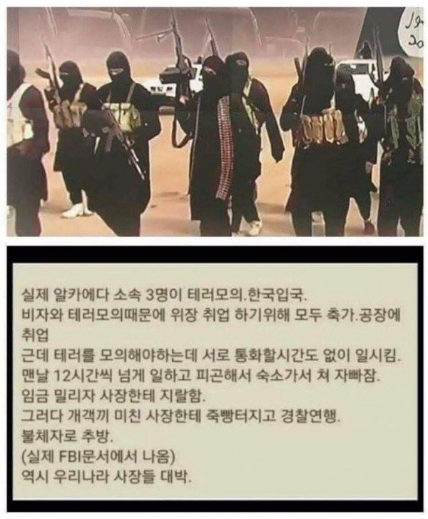 실제 테러 기획했다 취소한 이유를 보면 알수 있는데, 무기 공급이 까다로움. 그런 주제에 테러에 성공해도 파급효과가 적음. 우리나라서 테러를 여러번 성공하느니 유럽이나 미국서 성공하는게 더 효과적이란거지. 무기와 지원자 모집도 쉽고. 실제 이런 이유로 한국에 힘쓸꺼 미국에 전념하라고 알카에다 지휘부가 관뒀었음.
