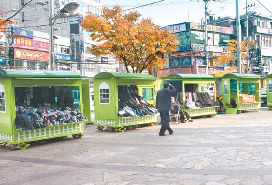 합법 노점상은 구청에서 부스를 만들어준다 저렇게 포장마차로 영업하는게 아니라