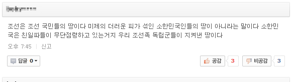저기 댓글단놈은 진짜 북한놈이 적은글같네 ㄷㄷ | 17.06.12 03:00 | | |