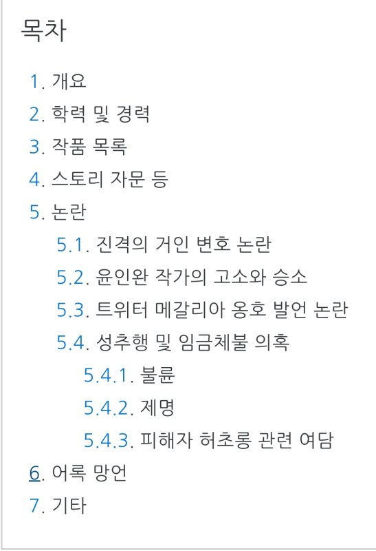 켜라위키를 한 번 들어가보자 목차에 이런 게 있다