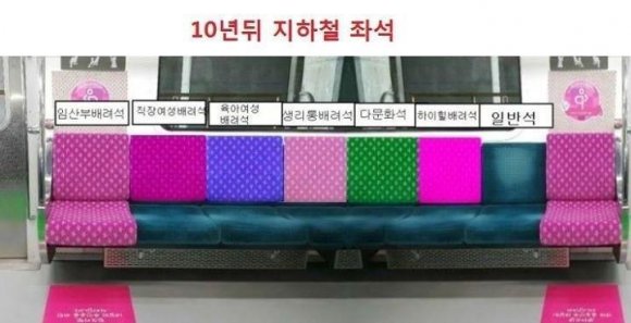 저 임산부배려석은 어느샌가 암묵적으로 그냥 여자들 자리가 되버린것같음