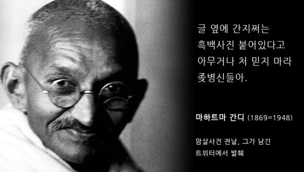 이것도 모순되는게 간디말도 믿지말아야하는거 아니냐 ㅋㅋㅋㅋ | 17.09.16 22:48 | | |