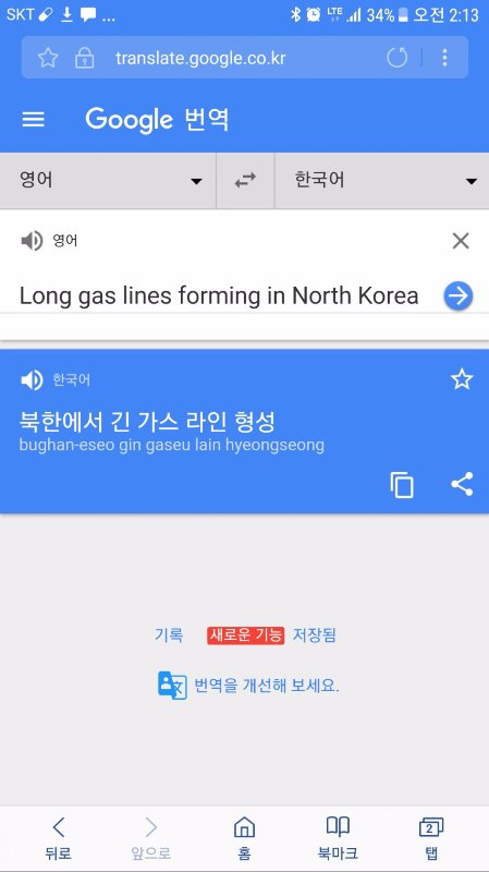 북한에 기름 사려고 줄선다는 기사를 주말이었나 본것 같은데 오늘 긴 가스관형성 기사를봣음....아무리 봐도 고의 같은데 | 17.09.18 21:14 | | |