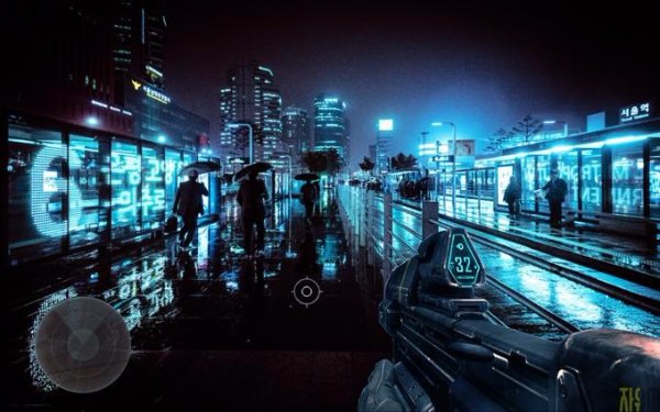사이버 펑크 배경의 필수요소들이 많이있음 특히 동양권 대도시에 쫙 깔려있는 네온사인간판 높은 인구밀도와 그로 인한 특색없는 건물들의 집합,건축에 유리도 많이 이용하고 딱 한국 도시모양이지 뭐 이거는 도쿄같은곳도 해당이 되긴하지만 우리는 난개발과 대도시가 합쳐져있는모양이 많으니 아무튼 사이버펑크 배경이랑 비슷한 한국도시에 밤에 비까지오니 완벽한 사이버 펑크 배경모습임 | 17.09.23 19:40 | | |