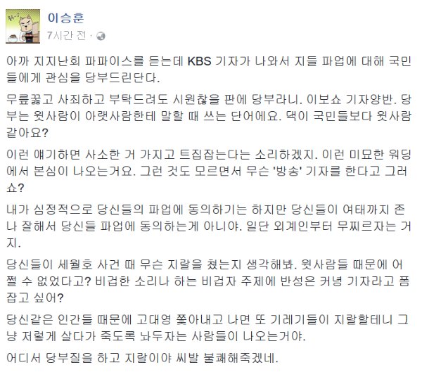 파업은 꾸준히 했다니까 그게 씨알도 안먹히고 묻혔었는데 정권바뀌고 파업하니까 좀 먹히니까 수면위로 떠오르는거지 너가 몰랐다고 안한거 아니다. | 17.09.29 11:04 | | |