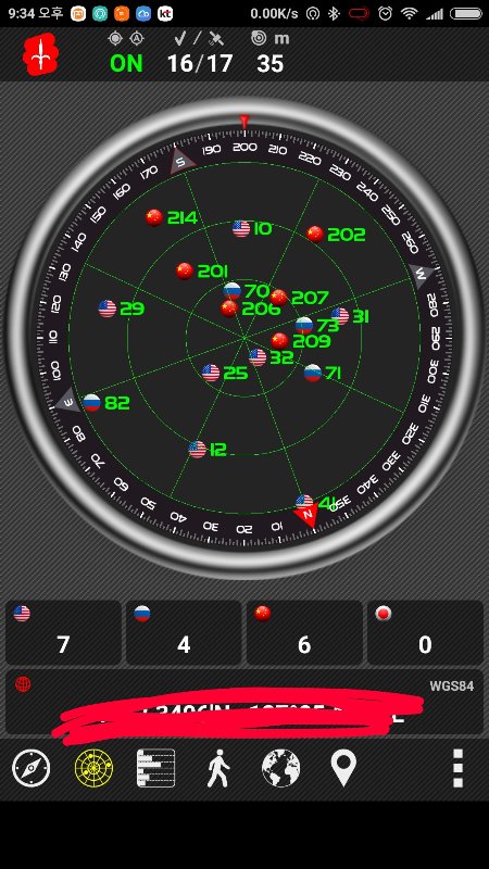 궁금해서 확인해보니 미국, 러시아, 중국 위성이 2:1:1로 잡힘. 몇 년전에 글로나스 잡히는거보고 신기해 했는데 이제는 중국꺼도 완전상용화 된 듯하네요.