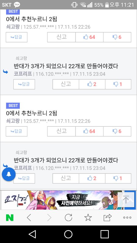반대가 3개가 되었으니 22개로 만들어야겠다 | 17.11.15 23:04 | | |