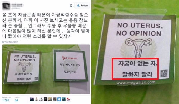 자궁암 같이 문제가 있어서 적출 수술 받으신 분들도 없다고 욕할 년들이네 | 17.11.16 10:18 | | |