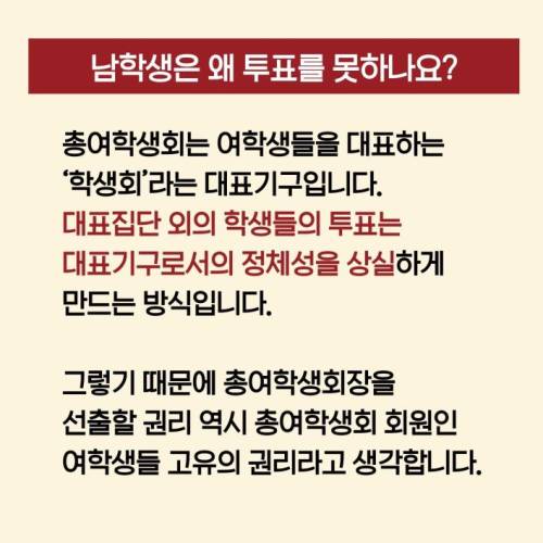 총여는 없어진지 꽤 됐어요. 제가 알기로 10학번인가가 마지막으로 총여회장했었던거같은데 저건 여성주의 소모임에서 제작한듯 하네요. | 17.11.22 18:56 | | |