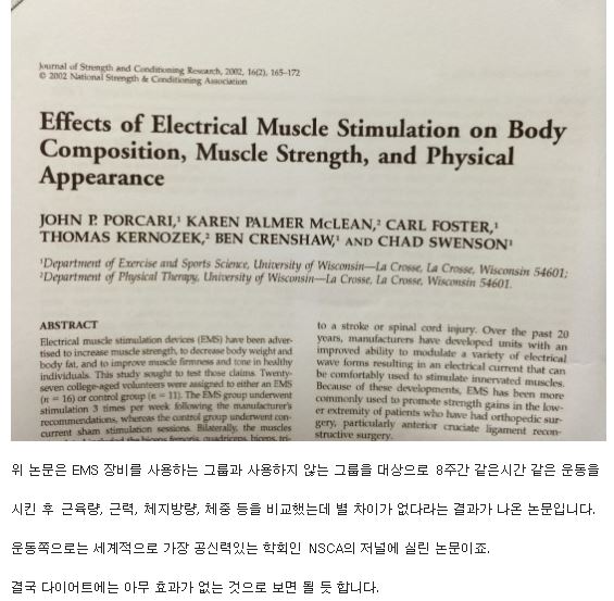 운동한 효과가 안나오면 효과가 없는거냐? 당장 정형외과가면 싹 깔려있는게 저 전기자극 치료기인데 대학병원에서 사기치는거네? 다이어트 얘기는 꺼내지도 않고 어떠한 효과가 있다고만 했는데 갑자기 다이어트 효과 없다고 반박하는건 뭐야 | 17.11.29 20:37 | | |