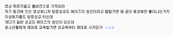 에이즈와 동성애를 연관지어 선동하는 ♥♥♥이죠. | 17.12.04 02:36 | | |