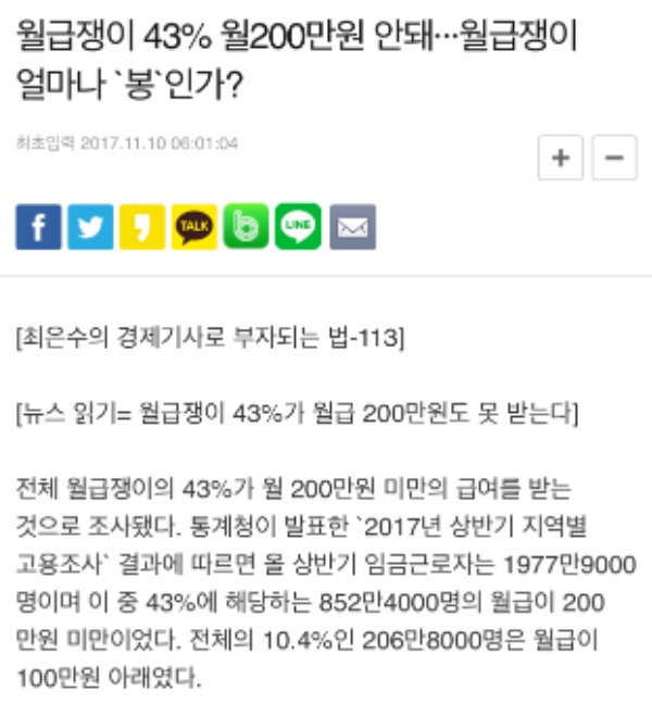 한국 노동인구의 반수가 얼마나 ↗같이 받고있느냐를 알 수 있음 | 17.12.20 08:14 | | |