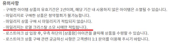 ㅇㅇ 마일리지는 크리스탈 소모시에만 지급된다던데
