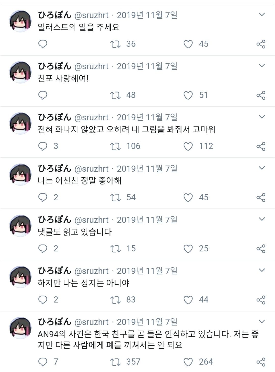 심지어 저거 그 사건 이전 트윗 | 20.02.08 13:44 | | |