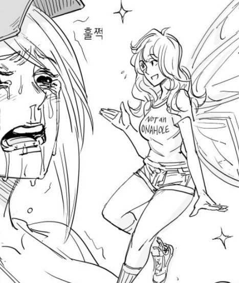 저 팅커벨 티셔츠에 '오나홀 아님'이라 써있는 거 보면 가능충들은 전세계에서 암약하나 보구만;