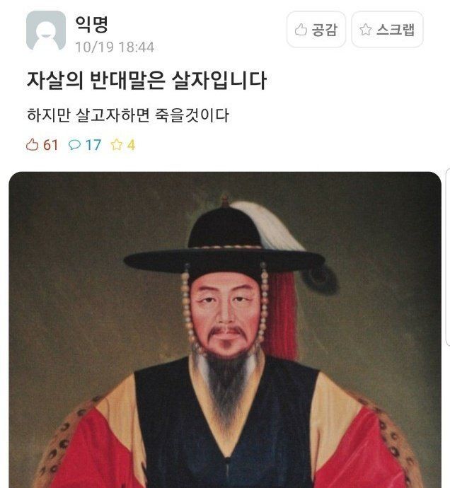 죽여주시옵소서 전하! =역사에 폭군으로 기록되고싶으면 죽여보시든지 죽였는가? → (O) 폭군으로 기록되었는가? → (O) 아 이걸 하네 | 22.03.14 18:59 | | |