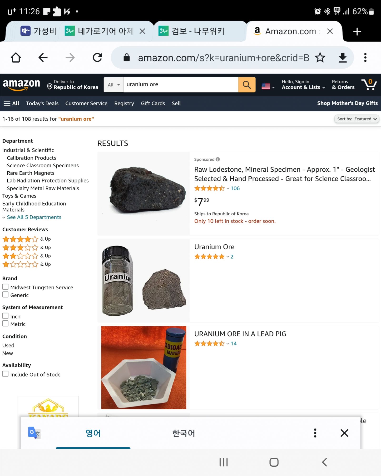 그나마도 원석에서 우라늄은 1%도 안 됨. 나머지는 다 돌 | 22.04.25 11:20 | | |
