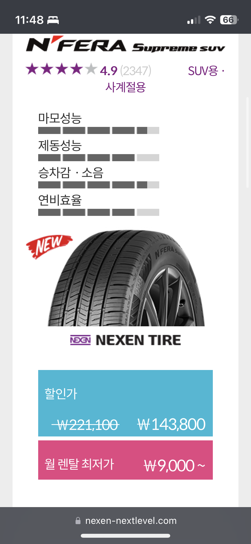 나도 g80에 엔페라슈프림 4짝 렌탈로 쓴지 1년쯤 돼 가는데 전에 한타 s2 as에 비해 그닥 나쁘단 생각은 안들어. 나름 만족스러워서 담번에도 넥센타이어 쓸 가능성 크다 | 23.03.16 14:32 | | |