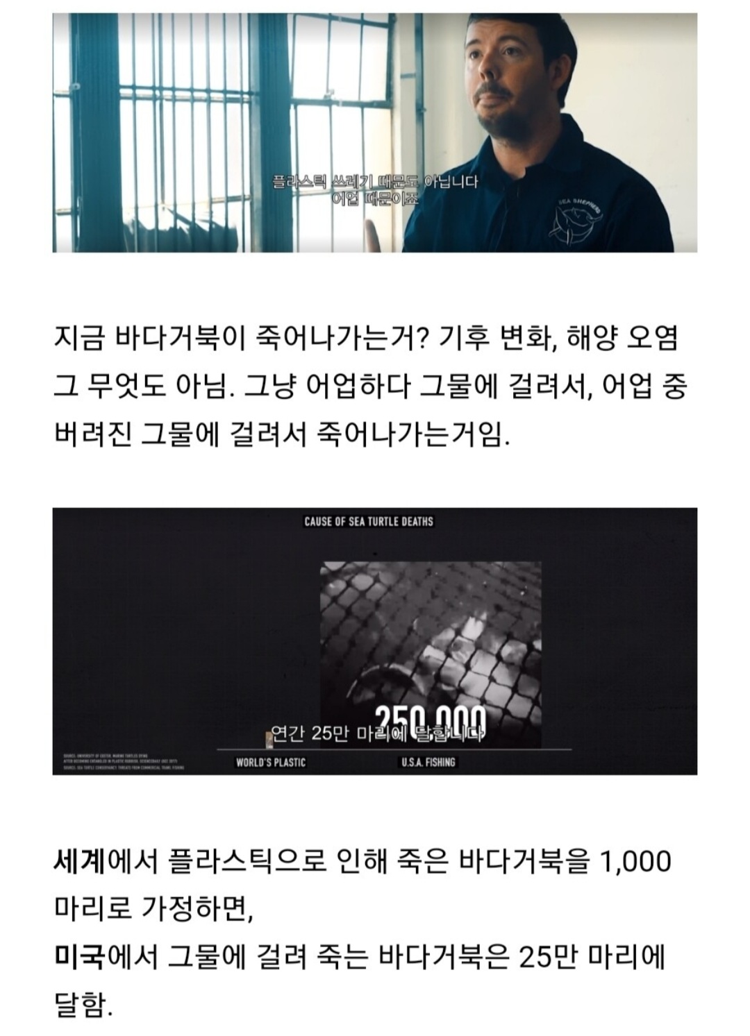 콧구멍에 빨대꼽힌 거북이 한 마리가 있다면 그물에 걸려 죽은 거북이는 99마리쯤 있지 않았을까 싶다ㄹㅇ