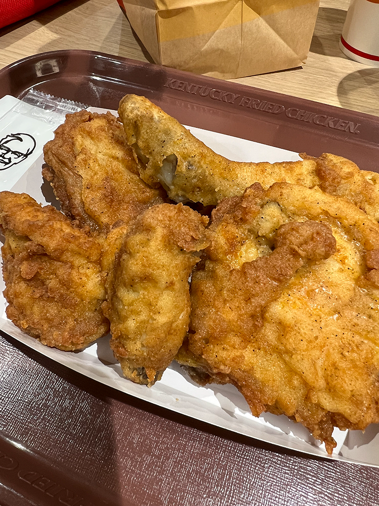 그냥 거의 기름범벅 수준에 사이즈만 작아져 가는 일본 KFC 보다는 뭐래도 나을듯.. 더 노답인건 이 나라는 치킨이라고는 KFC외엔 거의 다른대안이 없다는게 ㅜㅜ 뿌링클, 처갓집 양념 먹고 싶네요..