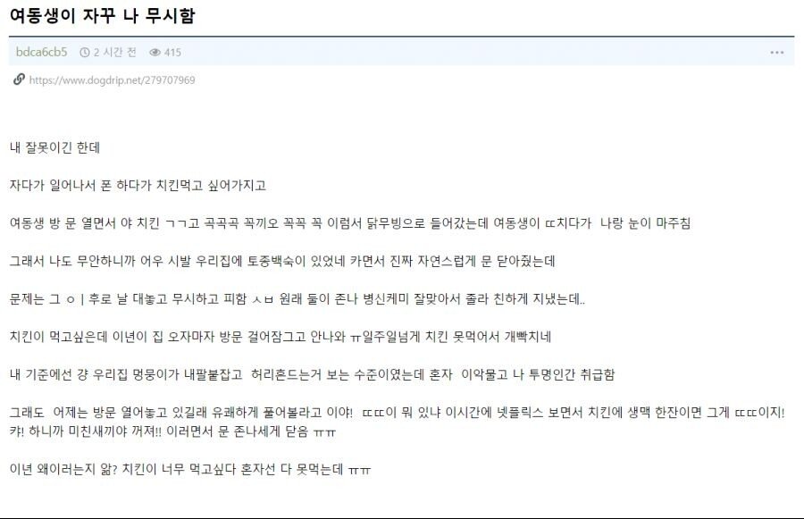 번외편 : 토종백숙 여동생
