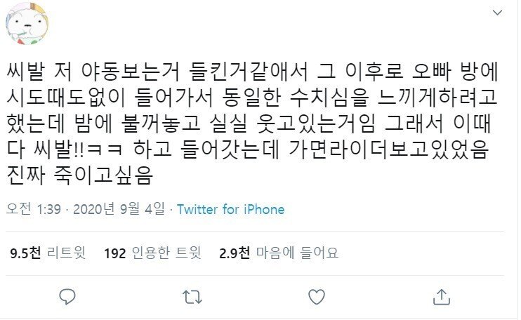 걍 여동생앞에서 시원하게 ㄸㄸㅇ 치면될듯 너만치는거아냐 나도 맨날쳐 이러면서