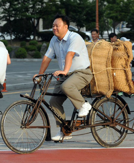 더들 계집애같은거나 타는군..... 상남자라면 풀 메탈제 마운틴 자전거를 타야지... 트럭과 충돌해도 멀쩡하다는 내구성...쌀 5가마니 이상 적재 가능한 내구도...