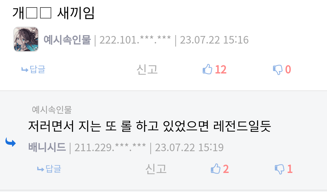 내가 캡쳐한 다른댓글에서 하는짓 보면 그런 의도는 아닌거같은데 | 23.07.22 15:29 | | |